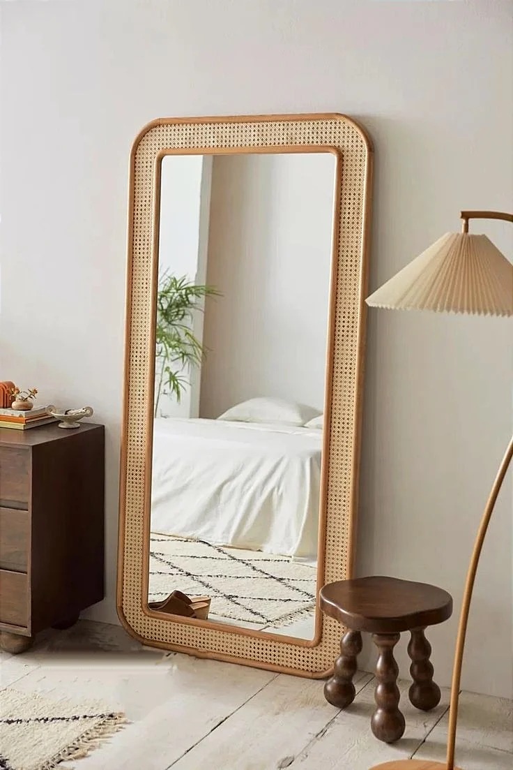 Marco de madera pura sostenible | Esterilla de mimbre natural | Tratamiento de sellado para que la pieza permanezca con el mismo acabado durante el paso del tiempo | Soporte trasero para ser soportado en pared garantizando la seguridad de la pieza y de las personas que habitan en el espacio | Antideslizantes incluidos para colocarlo de piso | Manual y accesorios para su instalación incluidos en la caja de envío.