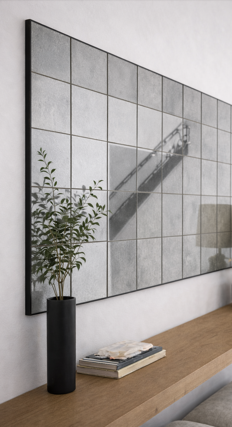 Consideración importante: El espejo envejecido es un material que presenta manchas, líneas y variaciones propias de su proceso. Lejos de ser defectos, son parte de su carácter y lo convierten en una pieza única, al igual que el mármol o la porcelana con sus vetas naturales.